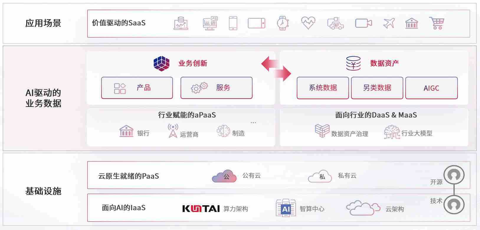 数字时代,,围绕企业数字化转型的关键要素,,人生就是搏数码开创性的提出数云融合战略和技术体系框架,,着力在云原生、、、、数字原生、、、AI原生和信创产业上架构产品和服务能力,,,为处在不同数字化转型阶段的快消零售、、、汽车、、、金融、、、医疗、、、、政企、、、、教育、、、运营商等行业客户提供泛在的敏捷IT能力和融合的数据驱动能力,,,,构建跨界融合创新的数字业务场景和新业务模式,,,助力企业级客户建立面向未来的核心能力和竞争优势,,全面推动社会的数字化、、智能化转型升级。。